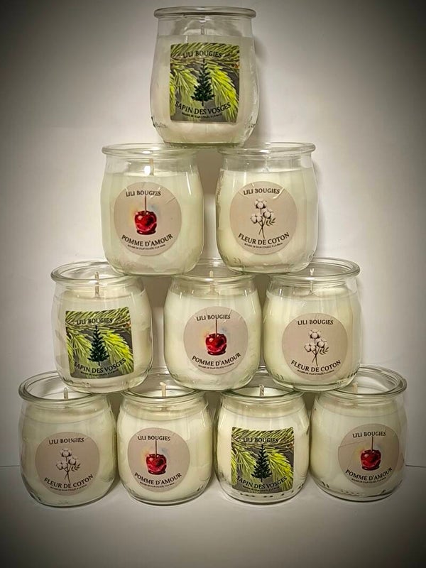 Bougies parfumées 100% naturelles et végétales à la cire de soja et parfum de grasse.